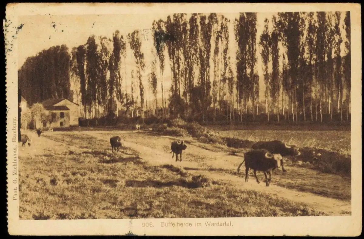 Postcard Mazedonien Vardar Wardar Büffelherde 1920 Mazedonien Mazedonia