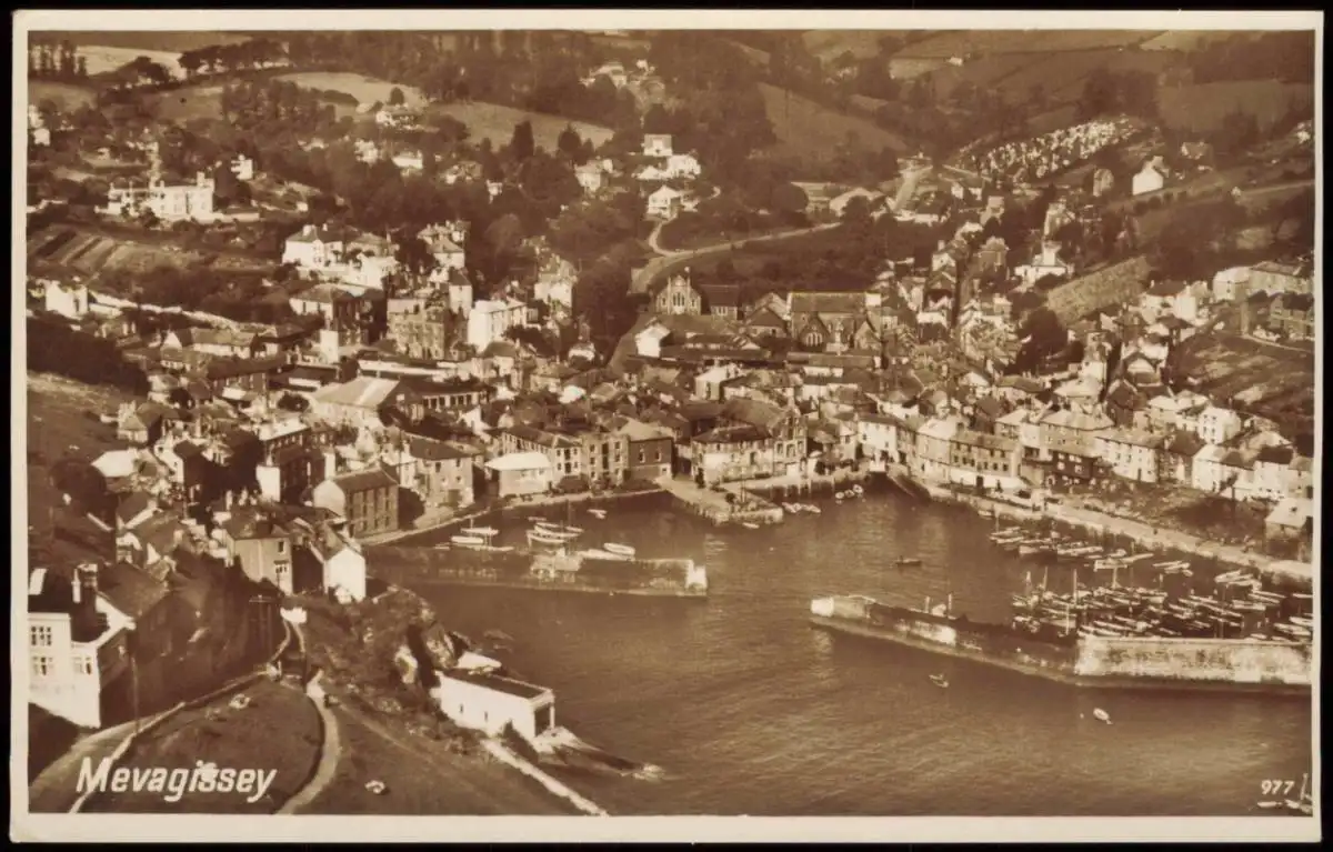 Postcard Mevagissey Cornwall Luftbild areal view 1932