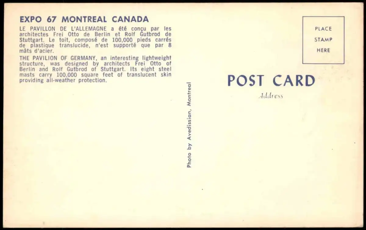 Postcard Montreal EXPO 1967 LE PAVILLON DE L'ALLEMAGNE 1967