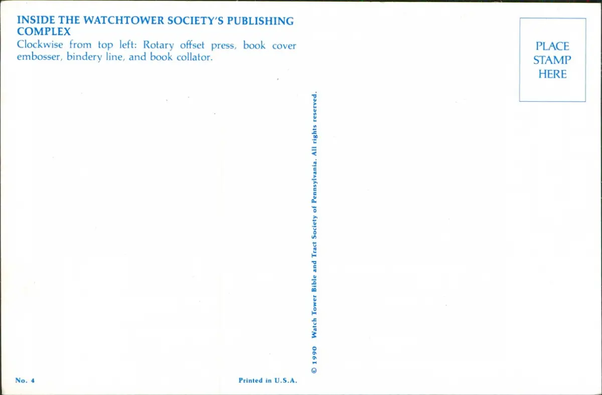 Postcard New York City 4 Bild Rotary offset press - Watch Tower 1990