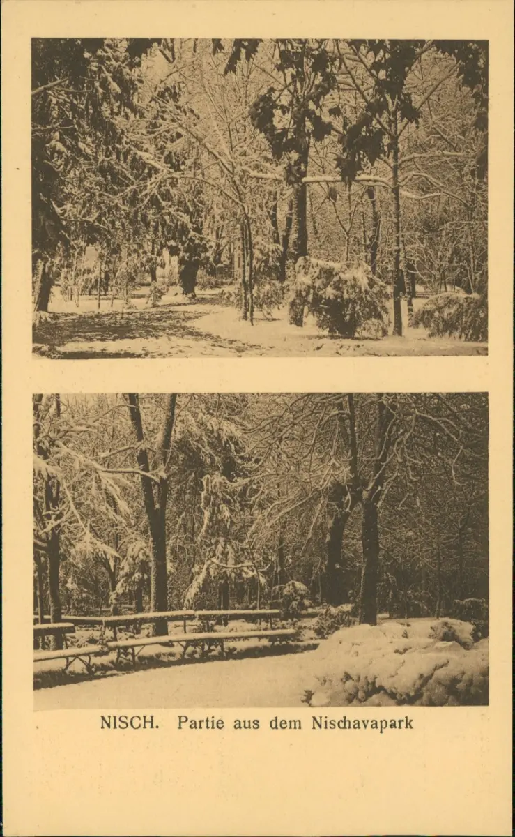 Postcard Nisch (Serbien( Niš Ниш 2 Bild Winter Nischavapark 1917