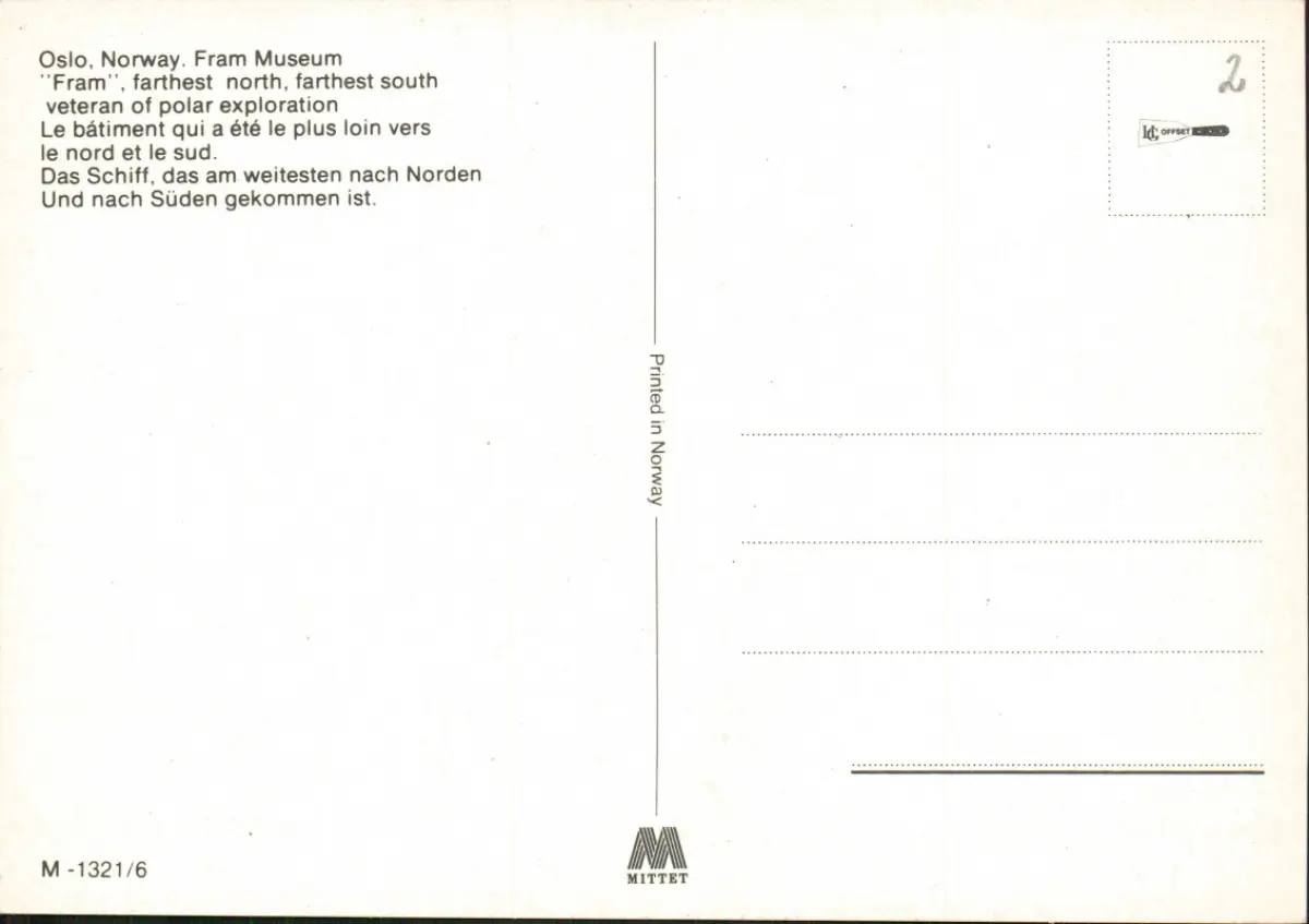 Postcard Oslo Kristiania Fram Museum"Fram" Schiff 1986