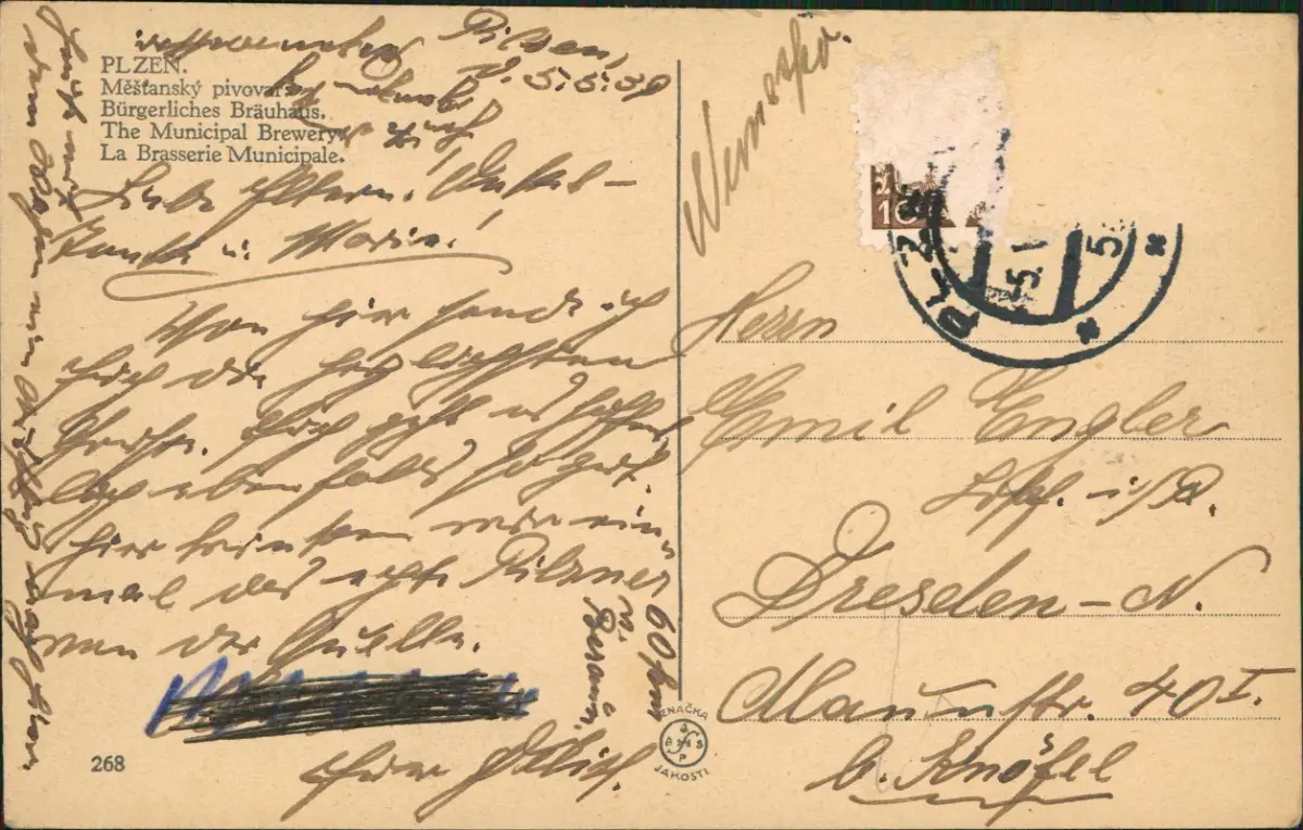 Postcard Pilsen Plzeň Měšťanský pivovar. Brauerei 1929