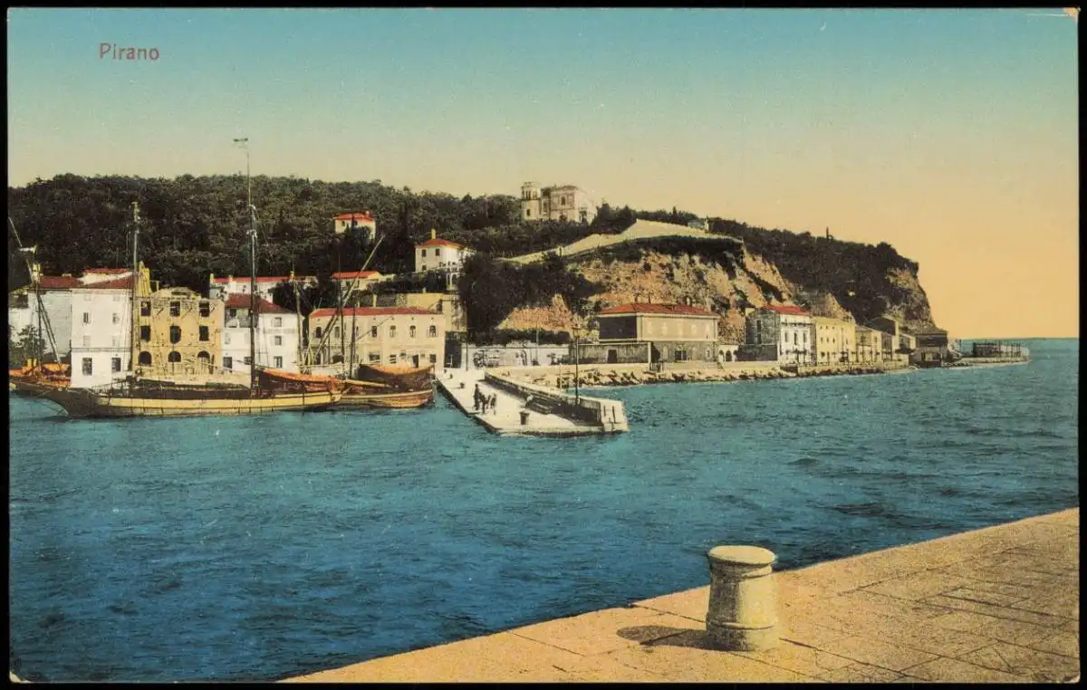 Postcard Piran Pirano Panorama-Ansicht Segelschiff Hafen Piran 1910
