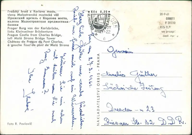Postcard Prag Praha Karlův most/Karlsbrücke 1961