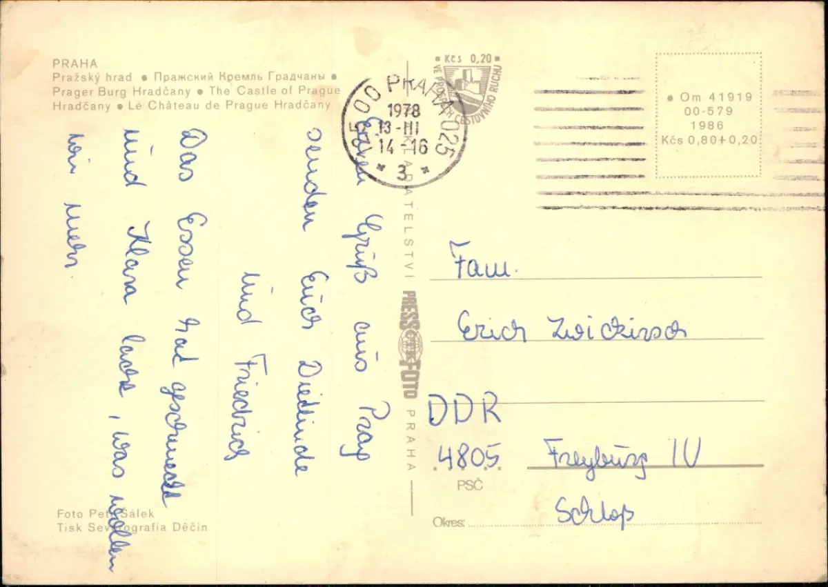 Postcard Prag Praha Pražský hrad 1978