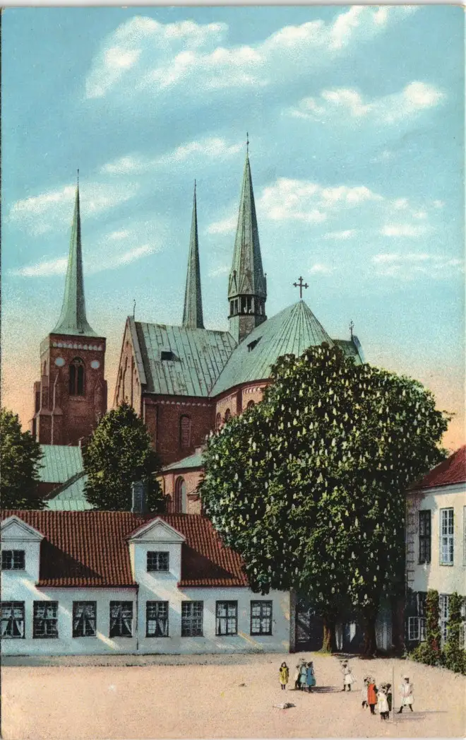 Postcard Roskilde Domkirke/Kinder, Platz - Kirche 1912