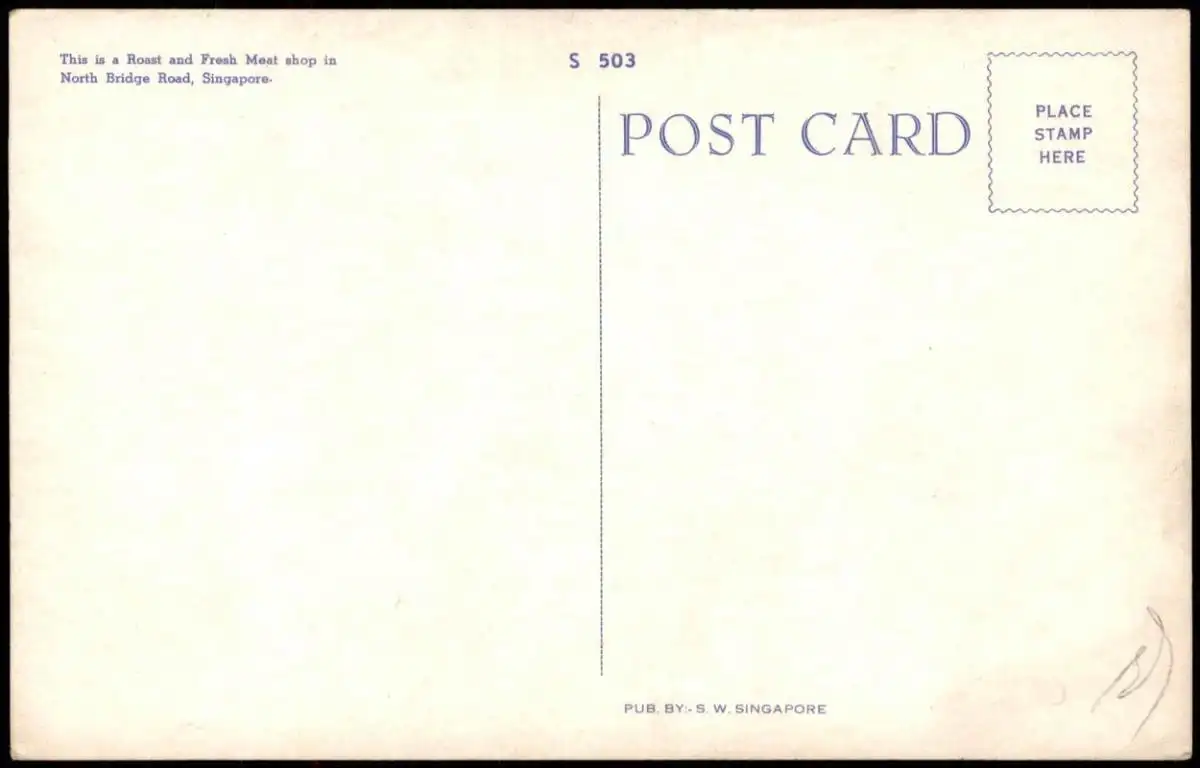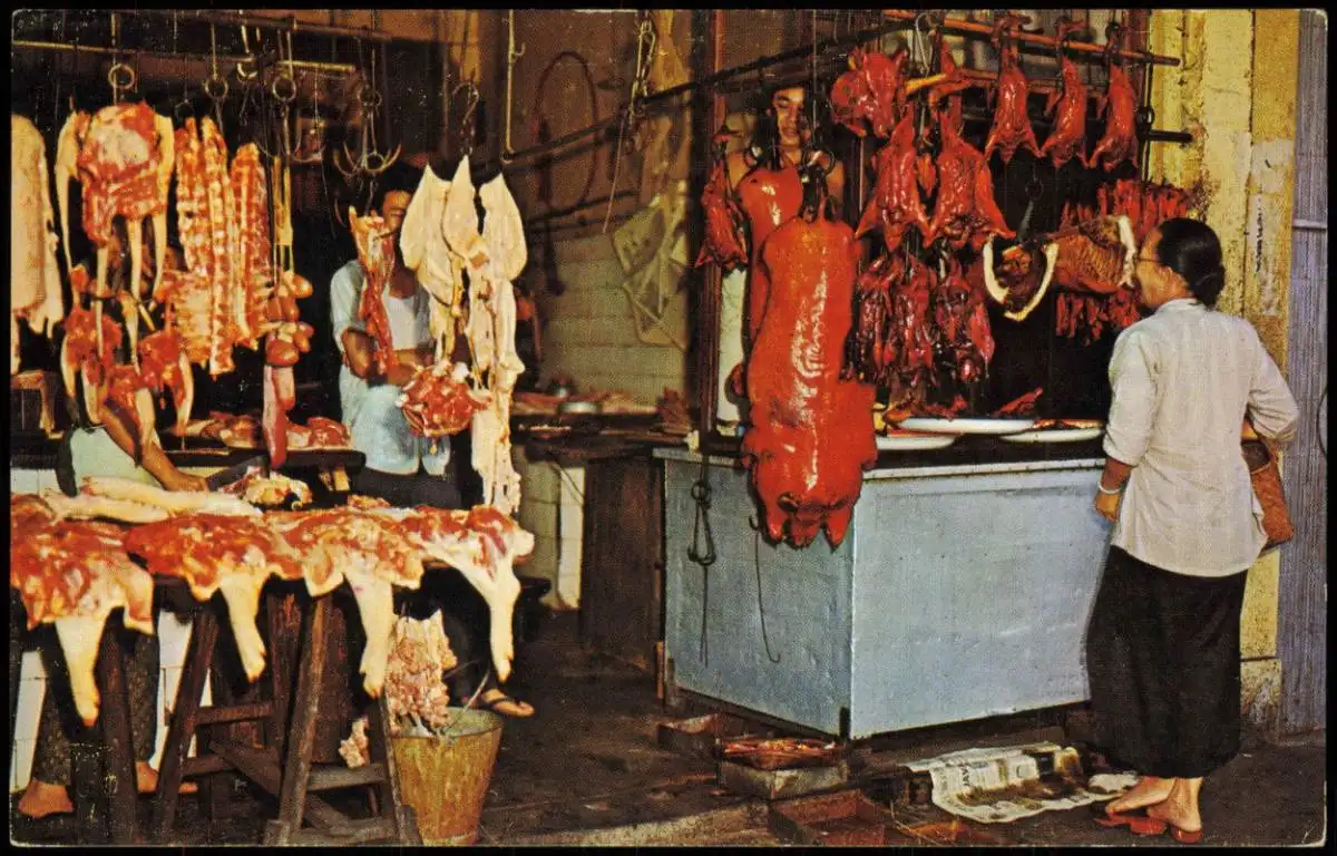Postcard Singapur North Bridge Road, Fresh Meat Shop 1972