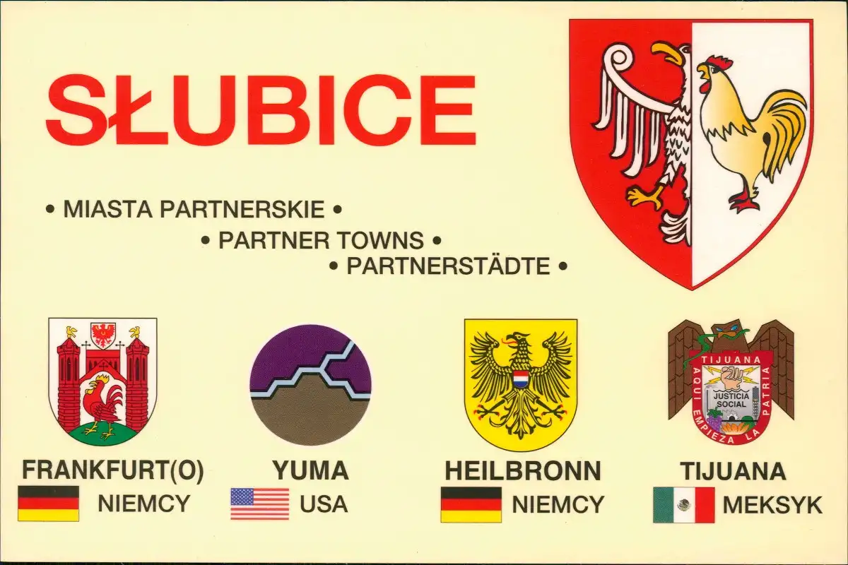Postcard Slubice Słubice Heraldik Partnerstädte 2003