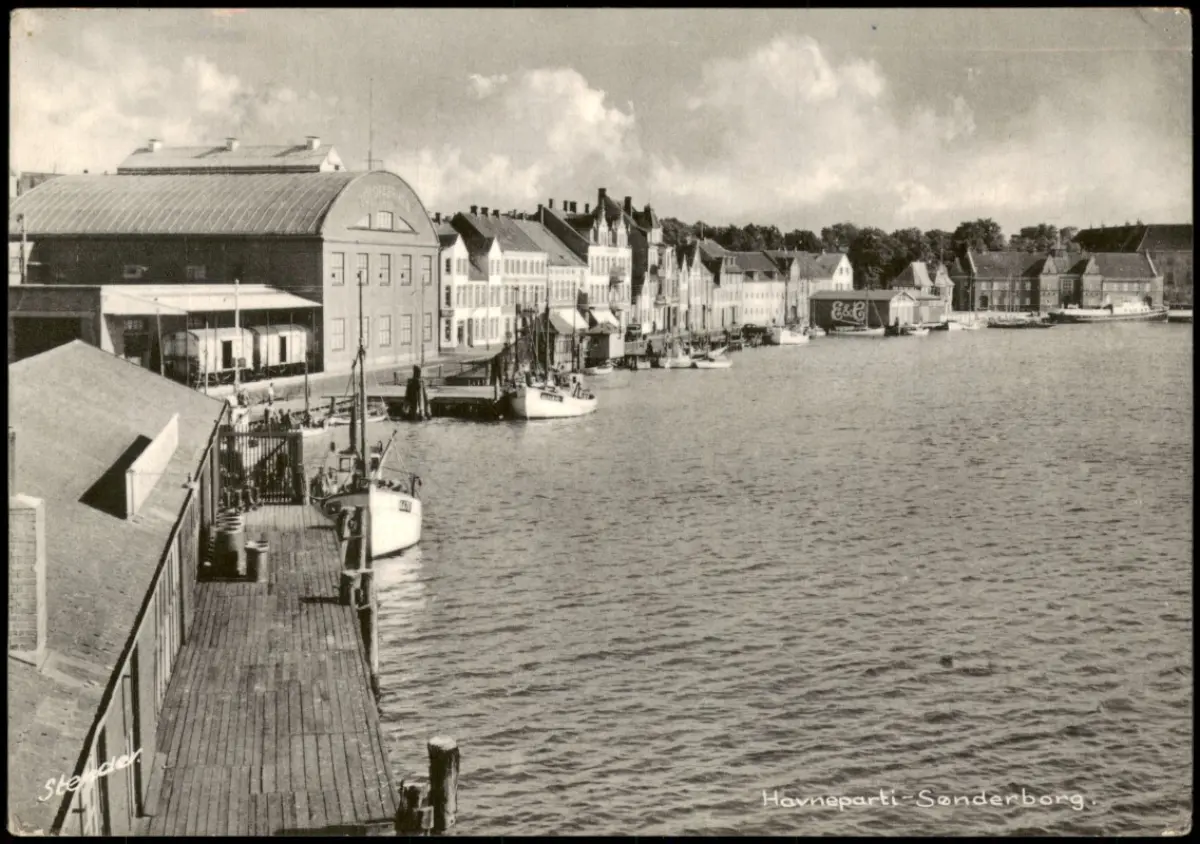 Postcard Sonderburg Sønderborg Havneparti Hafen 1957