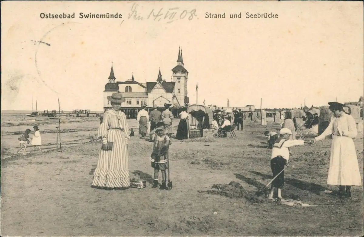 Postcard Swinemünde Świnoujście Strand und Seebrücke - Pommern 1909