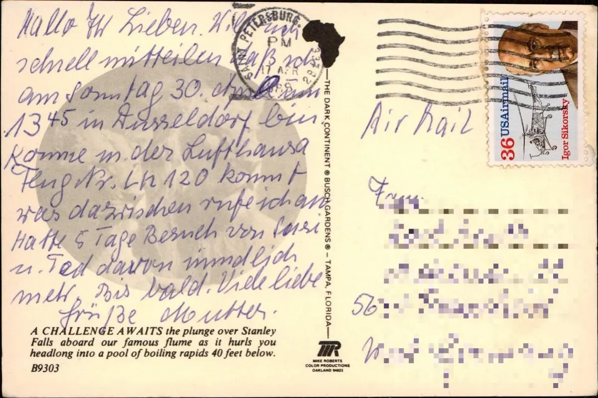 Postcard Tampa Busch Gardens Vergnügungspark Wasserrutsche 1989