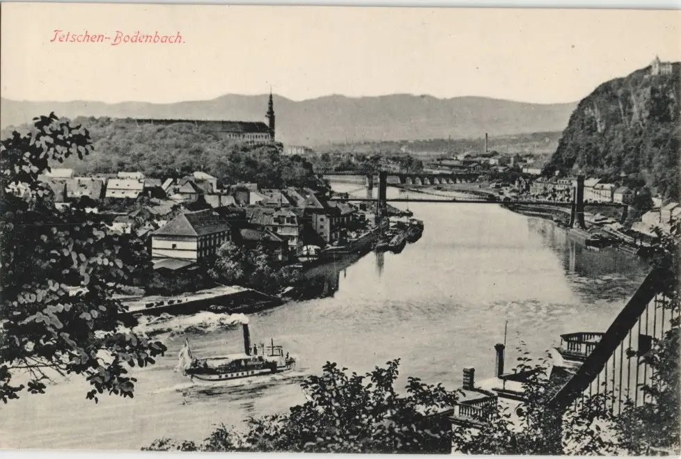 Postcard Tetschen-Bodenbach Decín Blick auf die Stadt - Dampfer 1912