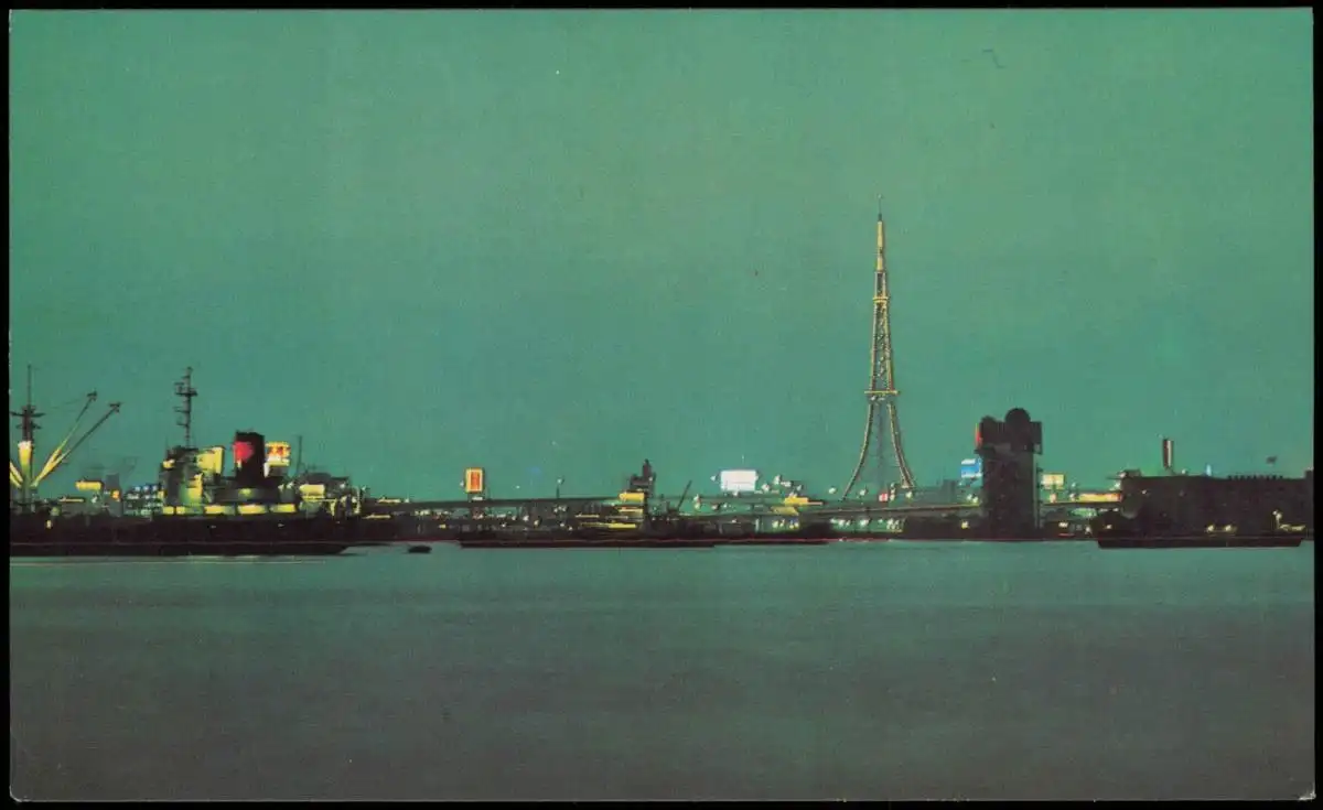 Postcard Tokio Tōkyō (東京) Tokyo Tower as seen from Bay. 1971 Japan Nippon