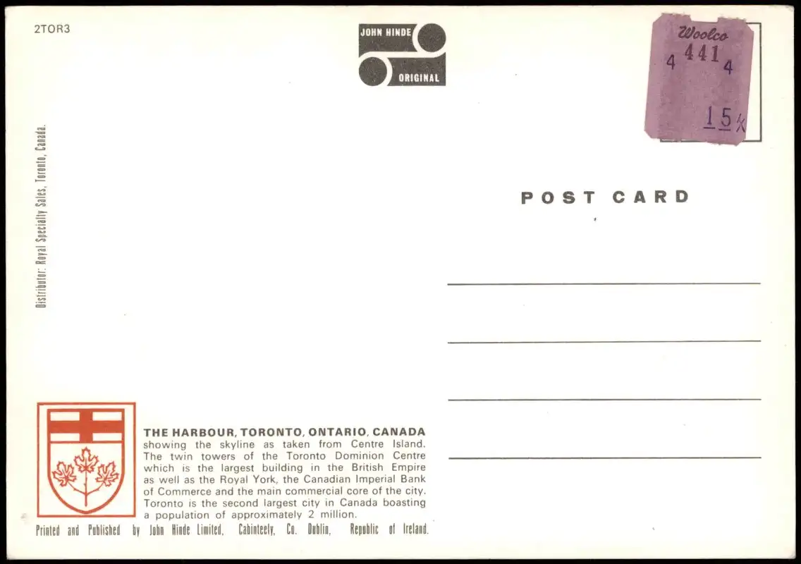 Postcard Toronto Panorama-Ansicht HARBOUR, TORONTO, ONTARIO, CANADA 1980