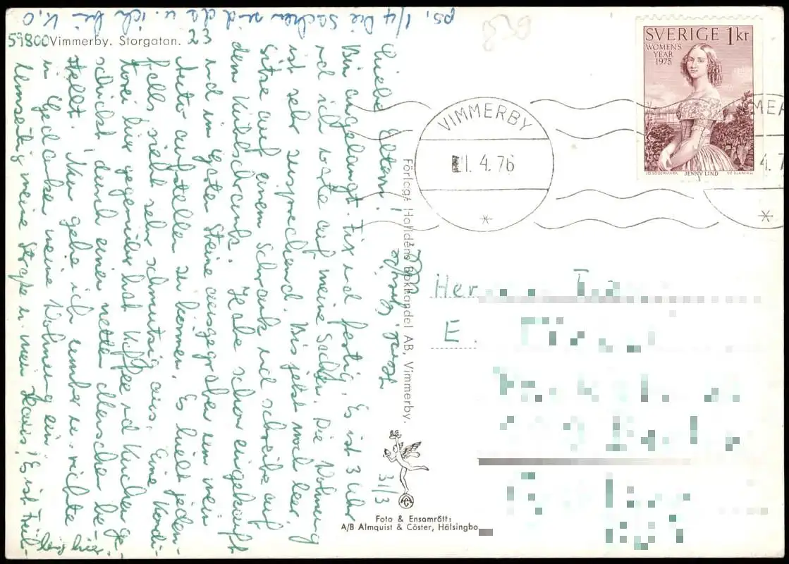 Postcard VIMMERBY Storgatan, Strassen-Ansicht, Autos u.a. VW Käfer 1976
