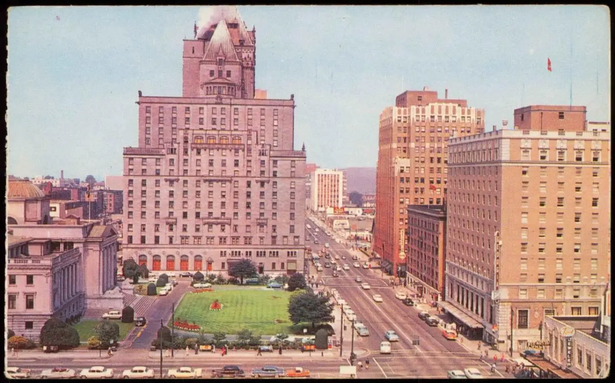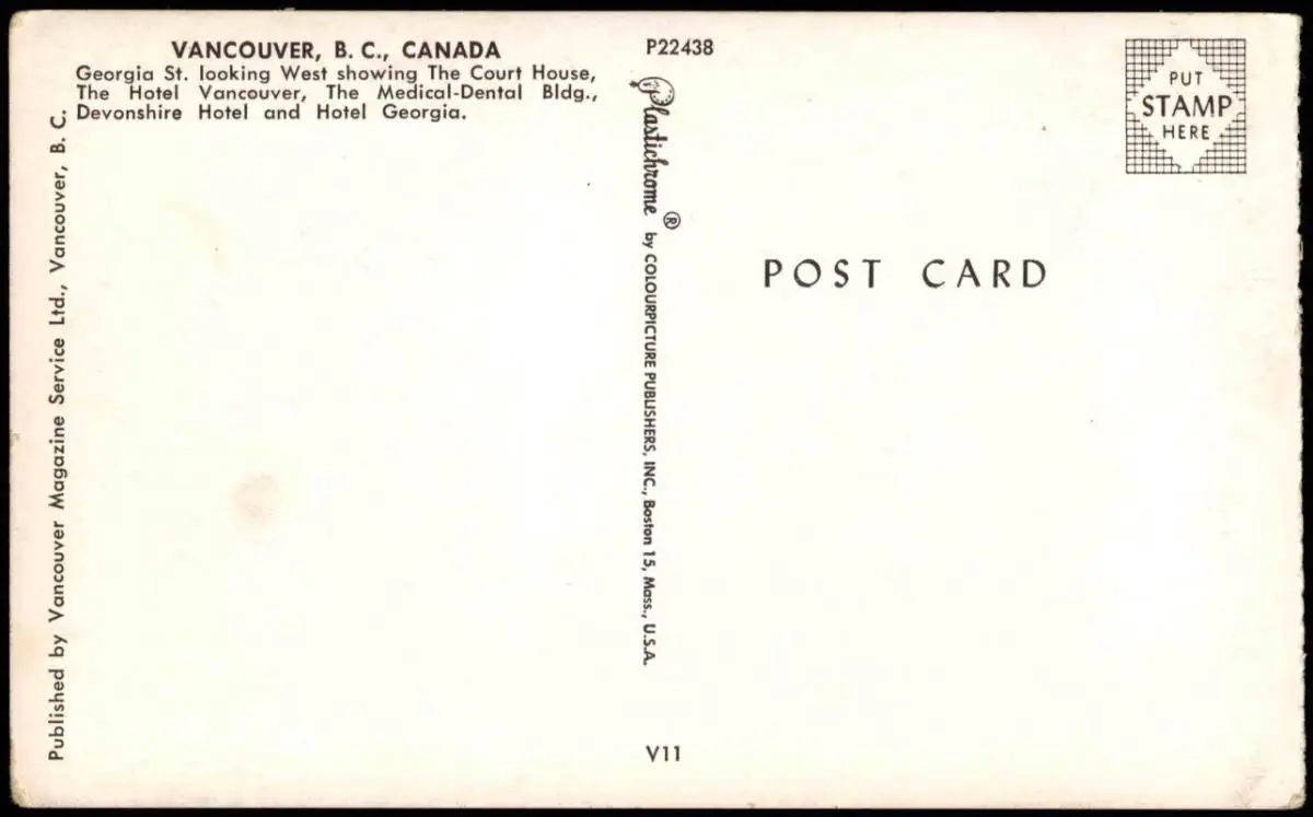 Postcard Vancouver Stadt-Panorama Georgia St. looking West 1960