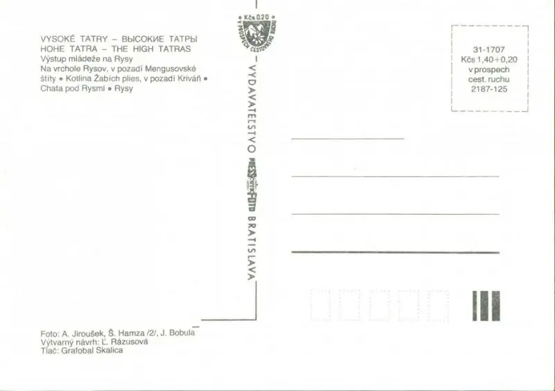 Postcard Vysoké Tatry Výstup mládeže na Rysy, VYSOKÉ TATRY 1985