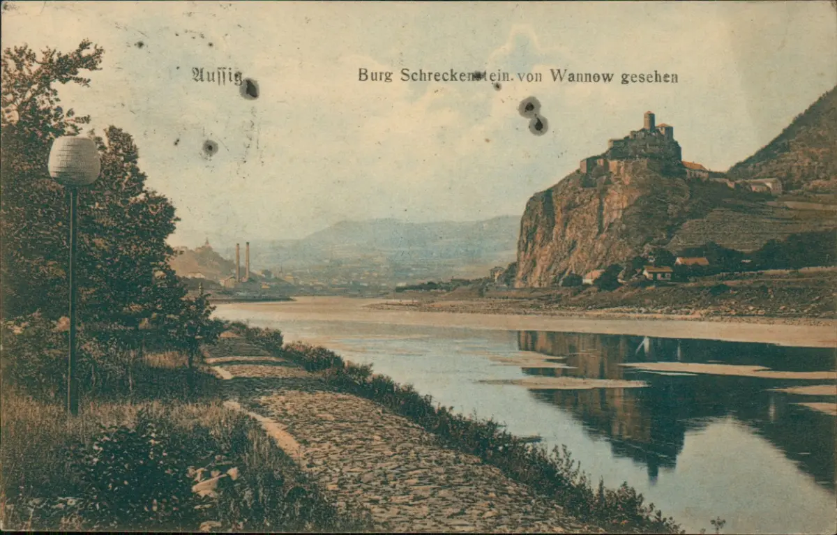 Postcard Wannow-Aussig Vaňov Ústí nad Labem Elbpartie - Lampe 1920