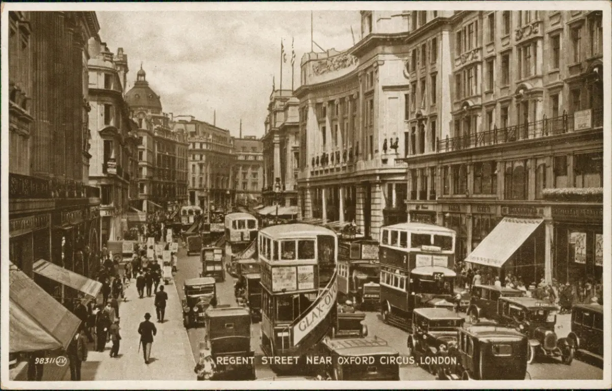 Postcard West End-London Regent Street near Oxford Circus 1924