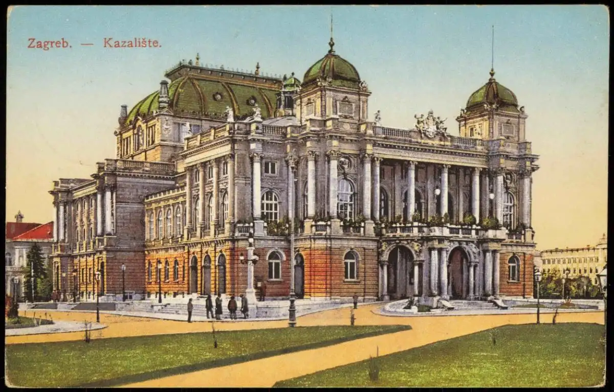 Postcard Zagreb Kazalište. 1917 gel. Feldpoststempel WK 1