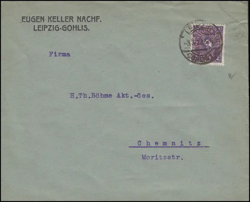 Posthorn 2 Mark zweifarbig als EF Brief LEIPZIG-GOHLIS 3.3.22 nach Chemnitz
