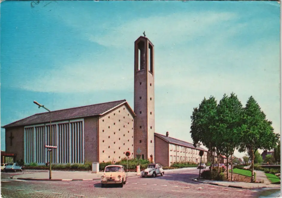 Postkaart Amstelveen Carmelkerk Strassen Partie Kirche, Autos 1972