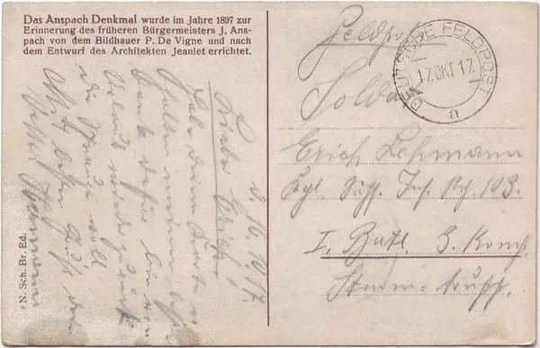 Postkaart Brüssel Bruxelles Denkmal 1917