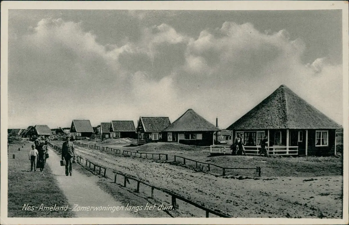 Postkaart Nes Ameland Zomerwoningen langs het duin. 1932