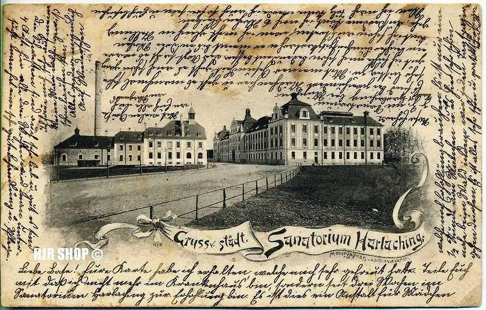 Postkarte, Sanatorium Harlaching, gelaufen, 8.04.1903, kl. Format, s/w., I-II, (Eck. Best.) Maße:14 x 9 cm, gute Erhaltung