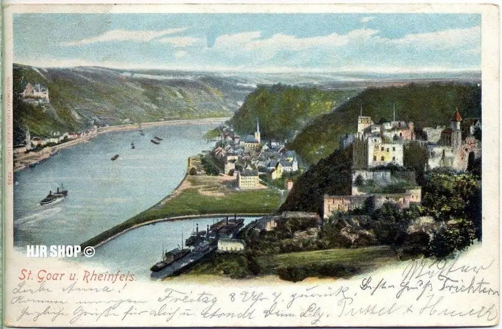 Postkarte, St. Goar u. Rheinfels. gelaufen, 5.07.1900/ kl. Format, col., I-II, (Eck. Best.) Maße:14 x 9 cm, gute Erhaltung
