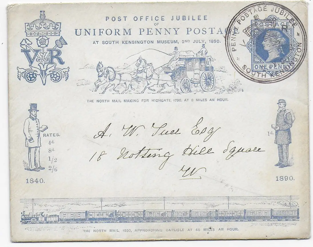 Postkarte zum Post Jubiläum in South Kensington 1890