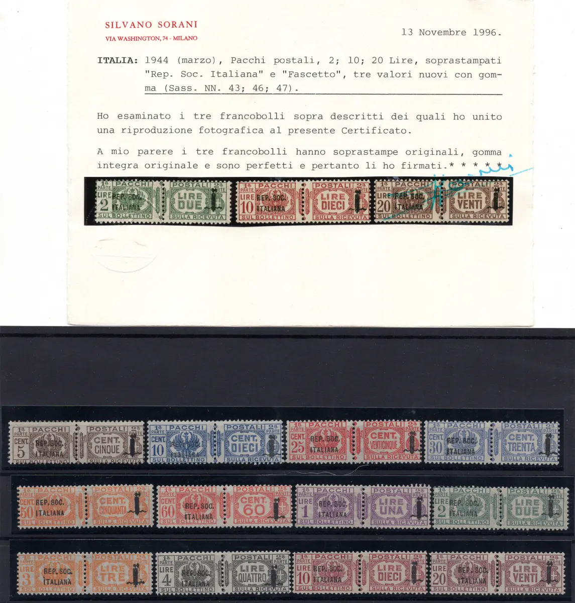 MNH - Vollgummi - - Postpakete Band Nr. 36/47 die komplette Serie sehr frisch, gut zentriert - Selten in diesem Zustand - Zert. Sorani (2, 10 und 20 Lire) - Kat. euro 3.750 Cod.378/182