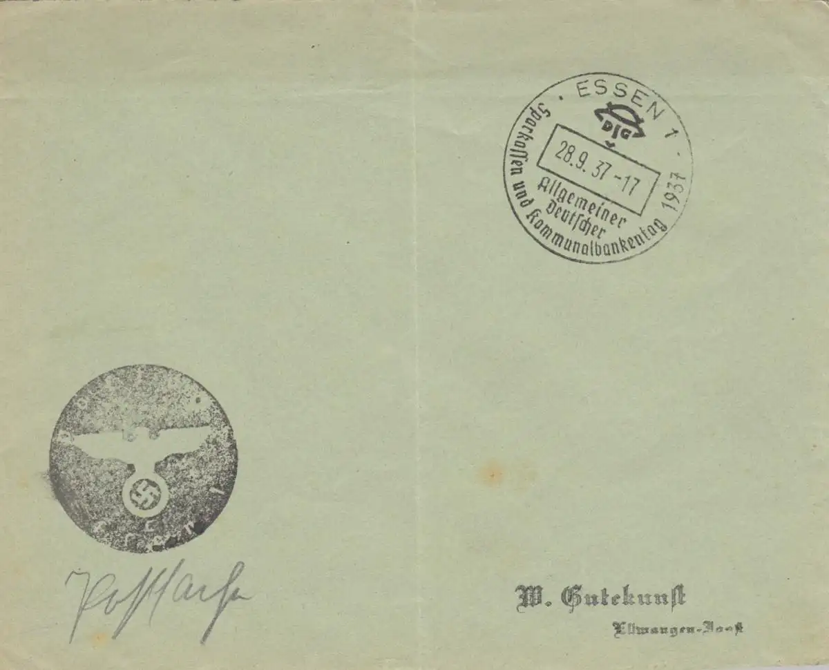 Postsache Kuvert 1937: Essen Sparkassen- und Kommunalbankentag
