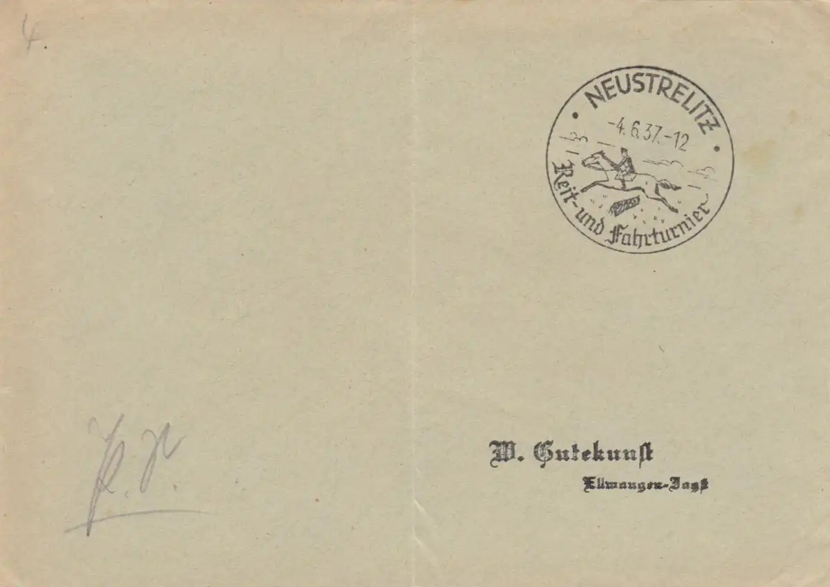 Postsache Kuvert 1937: Neustrelitz Reit- und Fahrturnier - Pferde, Reiten