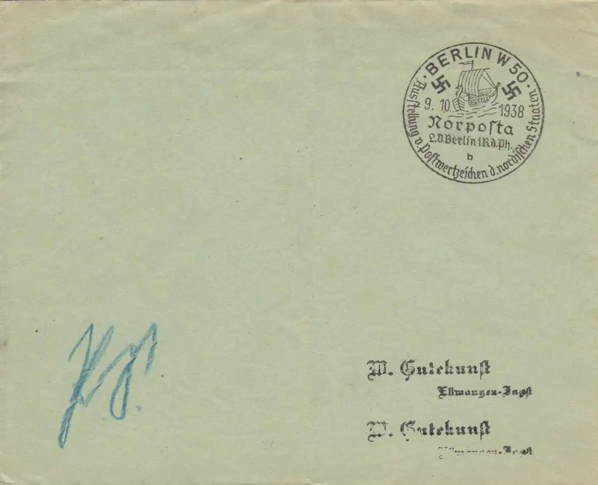 Postsache Kuvert 1938: Berlin Nodposta Postwertzeichen Ausstellung