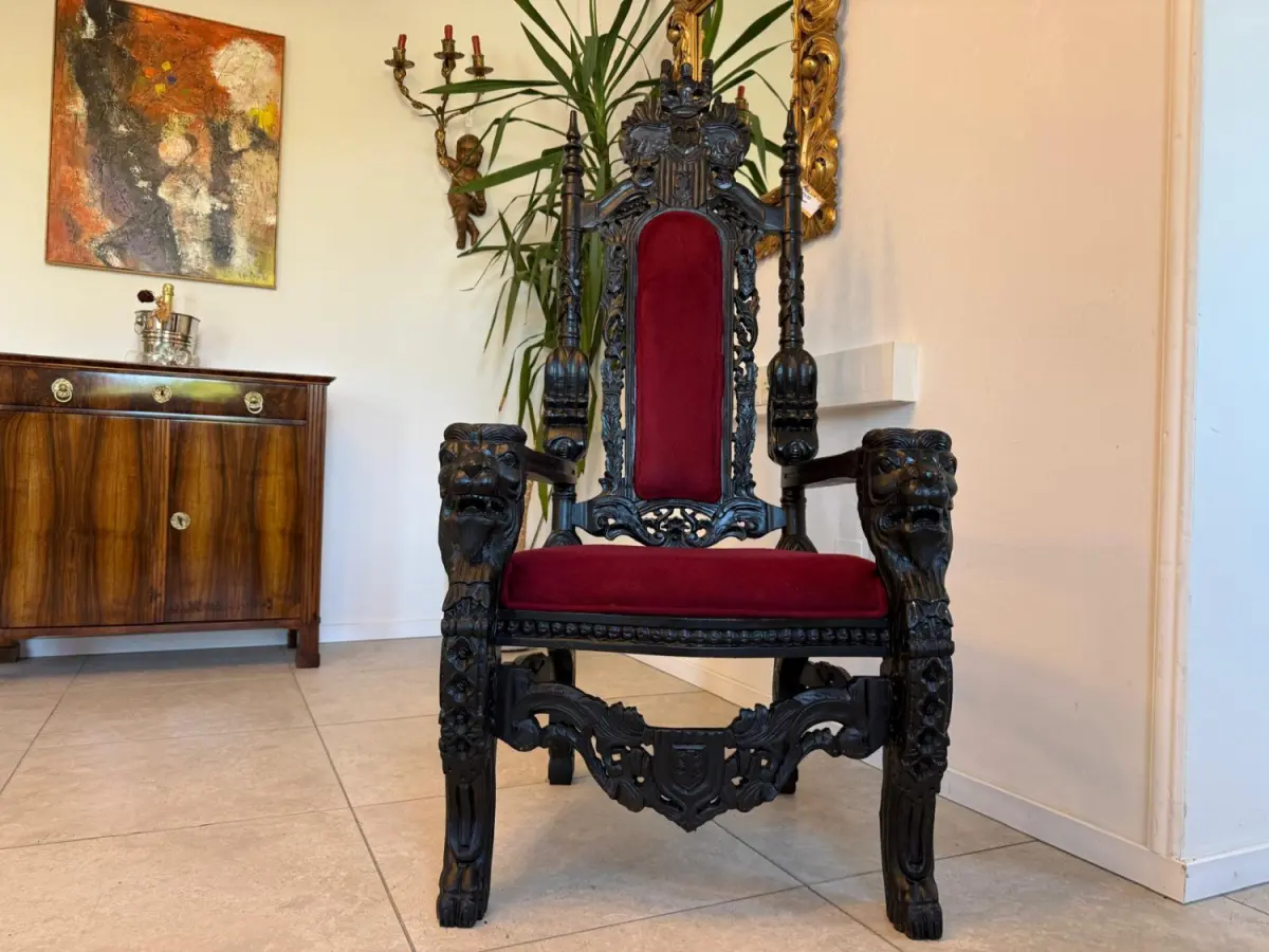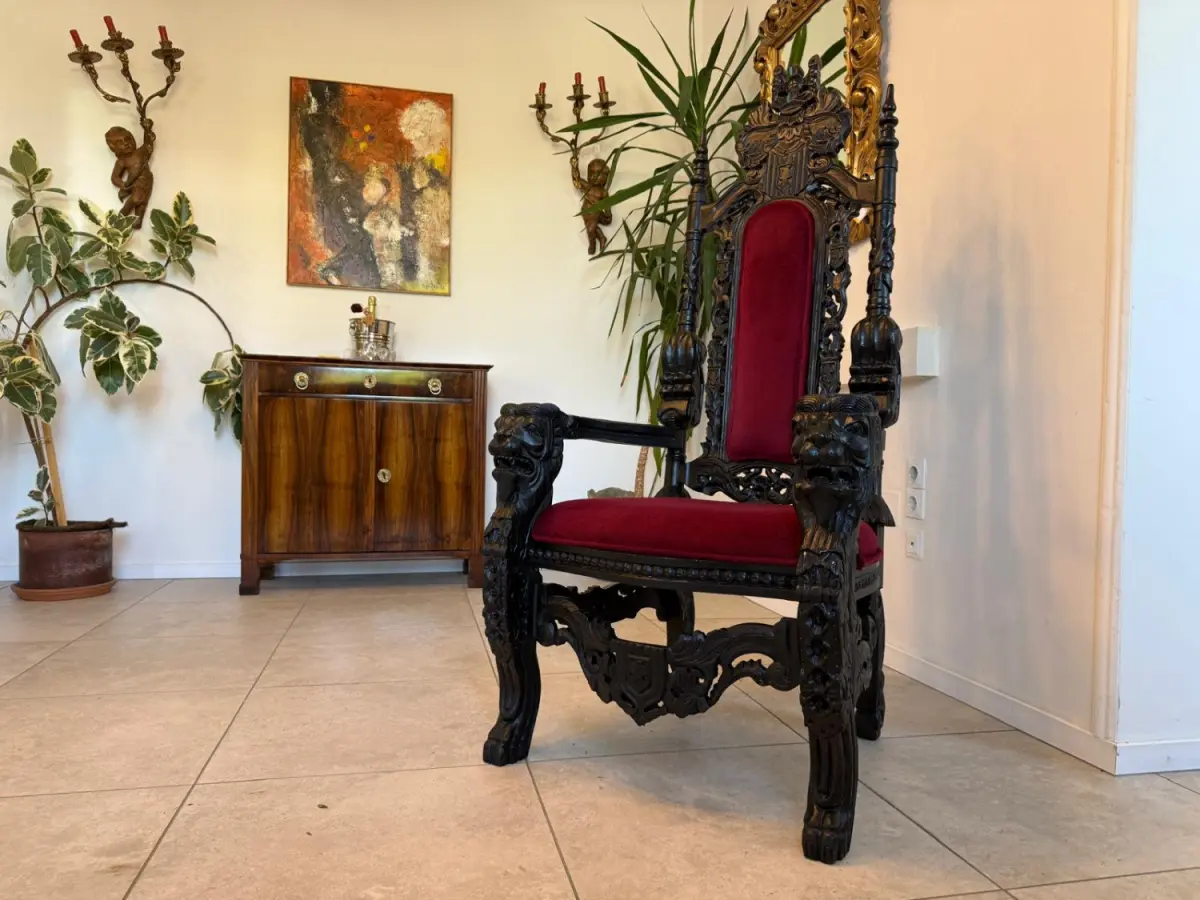 Zum Verkauf steht ein beeindruckender Prunksessel im königlichen Thron-Stil.