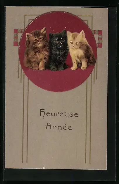 Präge-AK Ansicht von drei kleinen Katzen, Neujahrsgruss, Passepartout