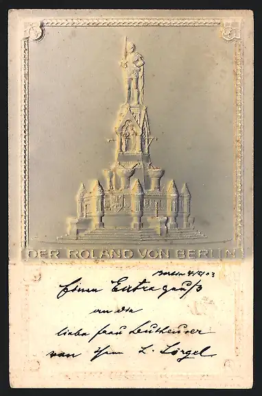 Präge-AK Berlin, Ansicht vom Roland Denkmal