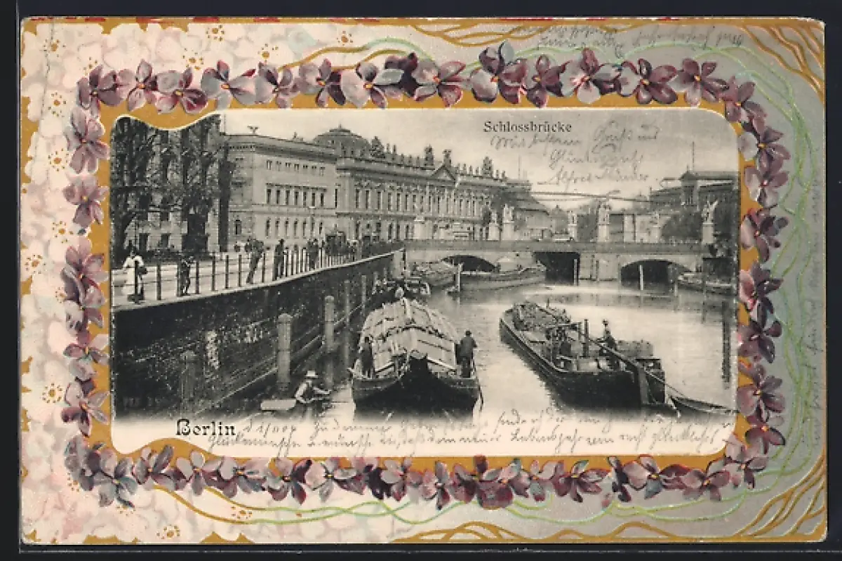 Präge-AK Berlin, Schlossbrücke, Veilchen-Passepartout