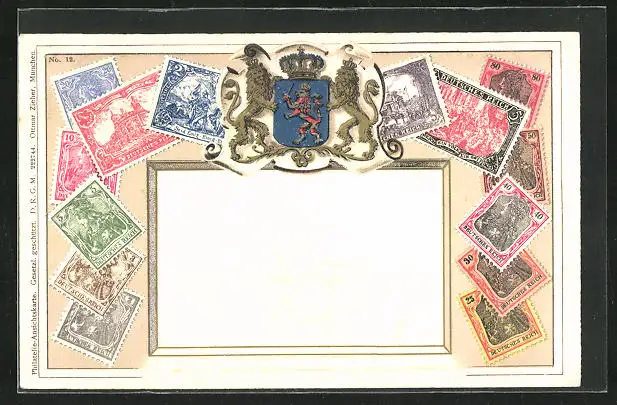 Präge-AK Deutsches Reich, Briefmarken und Wappen