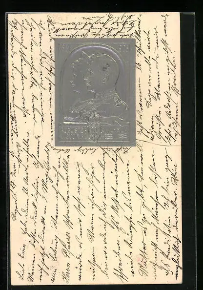 Präge-AK Erinnerung an die Silberhochzeit unseres Kaiserpaares 1906, Kaiserin Auguste Victoria Königin von Preussen