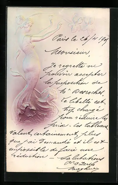 Präge-AK Hübsche Frau mit toller Figur, Jugendstil