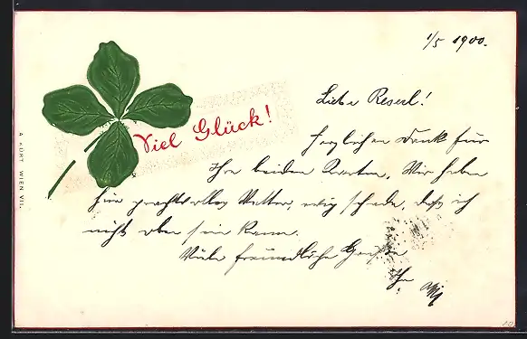 Präge-AK Kleeblatt mit Glückwunsch