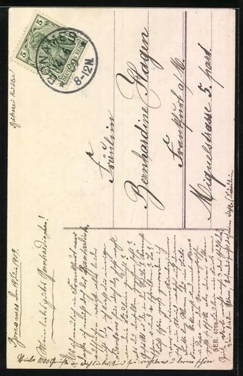 gelaufen 1909, Bugspuren oben mittig u. unten, guter Zustand