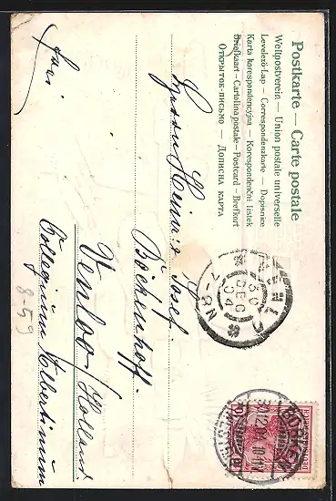 alte Ansichtskarte, gelaufen 1904, Eckknick re. oben, Einriss unten mittig, guter Zustand