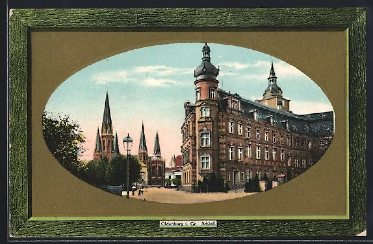 Präge-AK Oldenburg i. Gr., Schloss und Kirche, Passepartout
