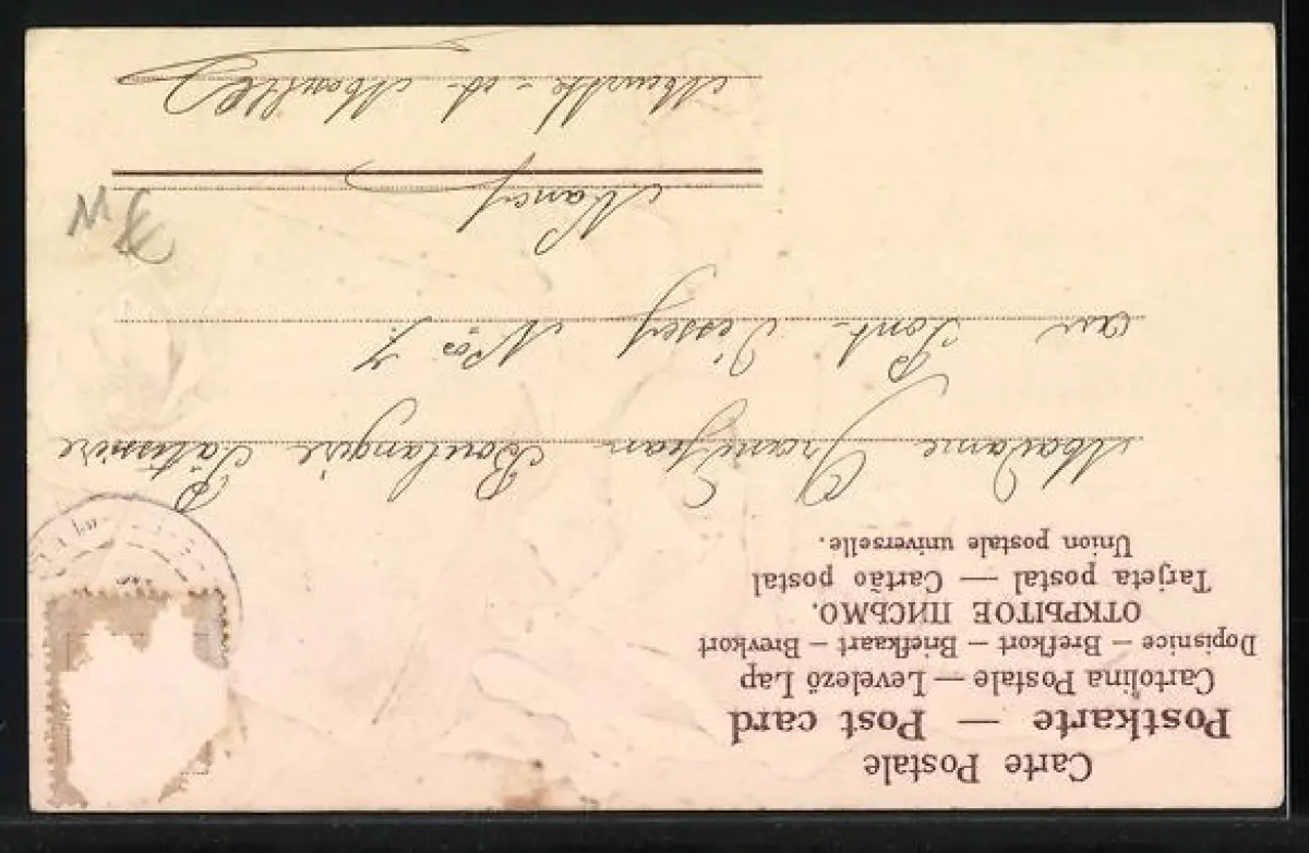 alte Ansichtskarte, gelaufen, Briefmarke entfernt, rückseitig Oberflächenschaden, guter Zustand