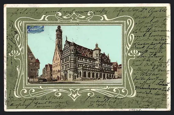 Präge-AK Rothenburg /Tauber, Partie am Rathaus, Passepartout