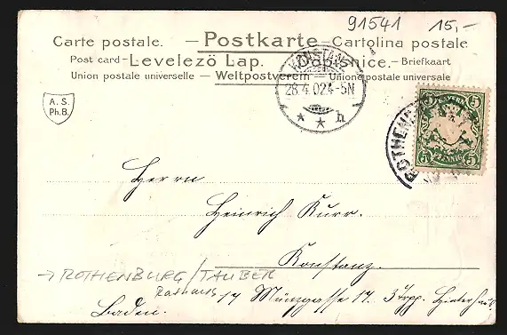 alte Ansichtskarte, gelaufen 1902, Bugspur mittig re., Oberflächenschaden, Stempelspur, guter Zustand